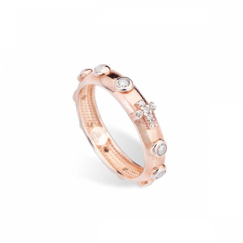 - Weiße Zirkonia entlang des gesamten Rings und im zentralen Kreuz für einen eleganten, strahlenden Look