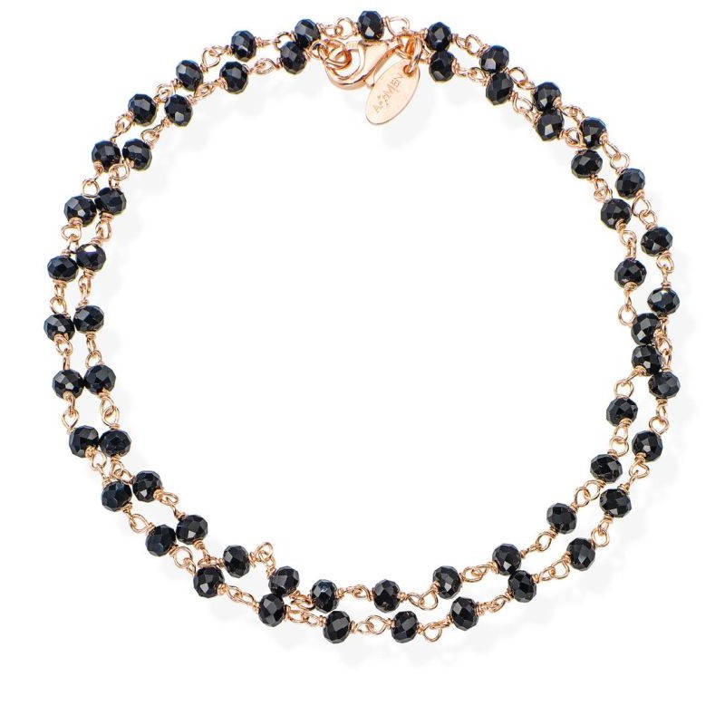 - Ein Armband, das Schlichtheit und Persönlichkeit verbindet, betont durch den Kontrast zwischen Rosé‑Finish und tiefschwarzen Kristallen